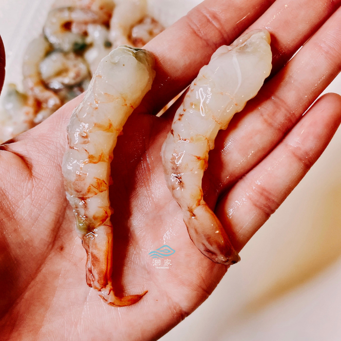 每隻蝦仁都已手工去殼,解凍就能下鍋,